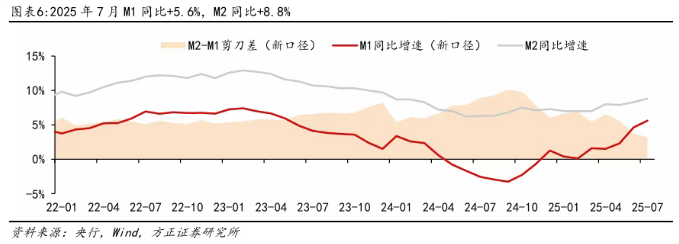 中信证券指出,根据中国人民银行数据,7月住户存款同比多减7800亿元;非银存款同比多增1.39万亿元。此外,M2-M1同比增速“剪刀差”收窄,反映资金活化程度提高,存款沉淀现象减弱。