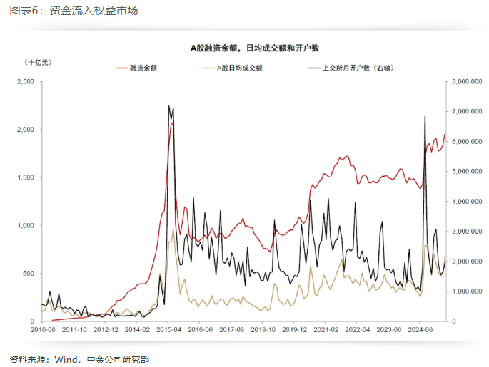 “过去多年的牛熊周期,权益市场还会面临‘股房跷跷板’的问题,居民增量配置有上限,但本轮没有这一约束,增量资金的天花板正在打开。”申万宏源证券指出。