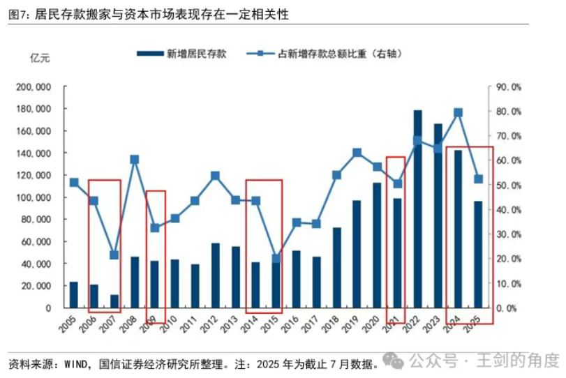 对此,国信证券表示,回顾历史,2005年以来我国出现过五次明显的居民存款搬家,分别为2006-2007年,2009年,2012-2015年,2021年,2024-2025年。从历轮存款搬家来看,低利率是推动存款搬家的因素之一,但资本市场表现才是核心驱动因素。