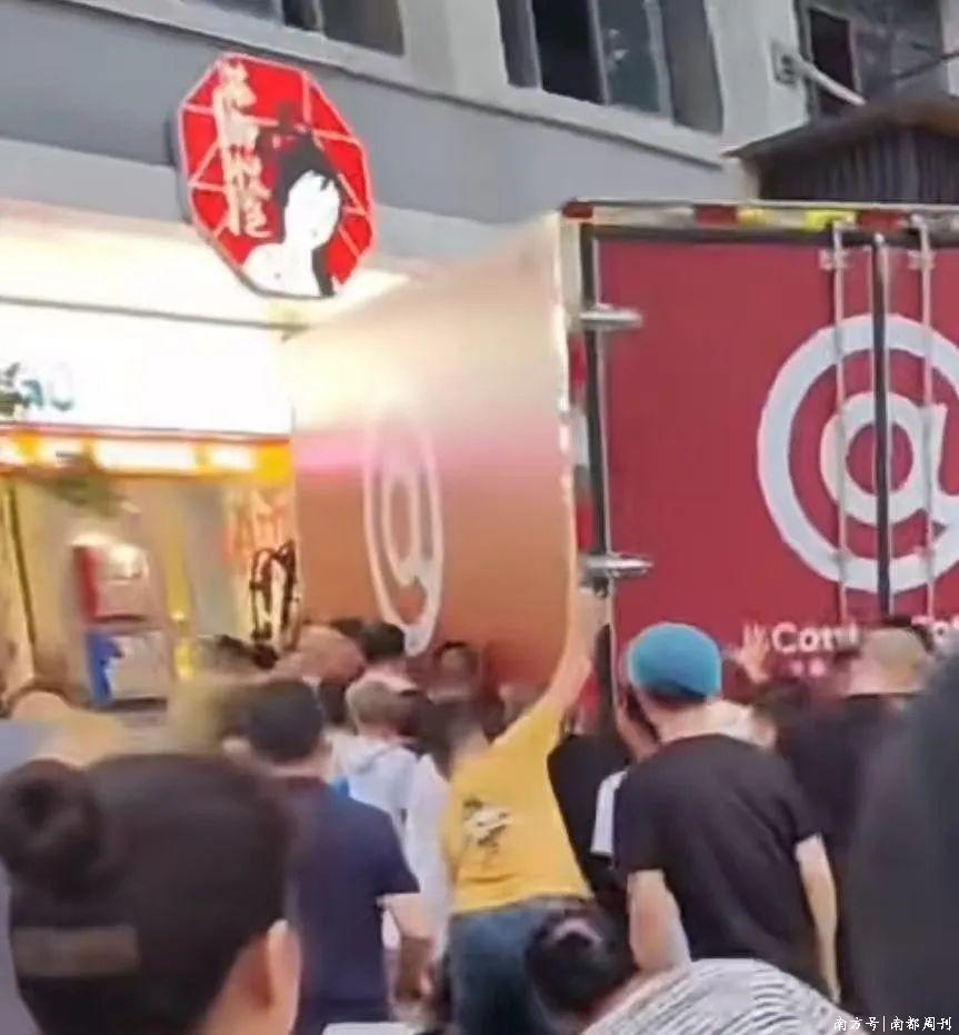 网友在社交平台发布的视频显示,一辆红色小型货车先是撞向绿化带,后转向冲撞茶颜悦色店铺门口,停下来后现场很多人在合力挪动货车,地面洒落了许多个人物品。